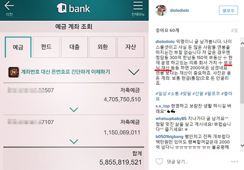 근데 또 다른인스타에선 부모님 재산을 언급함