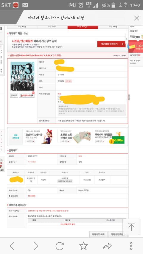 나 3일뒤에 이사하는데 주소지 변경하려고 봤는데 이삐들이 배송지 바꿀 수 있다고 햐서 찾아보는데 안나오더라구.. 폰으로 봐서 그런거야? 이거 말고 회원정보 수정은 했거든 근데 티켓 수령지는 안바껴.. 어떻게 해야하는지 아는이삐??ㅜㅜㅜ