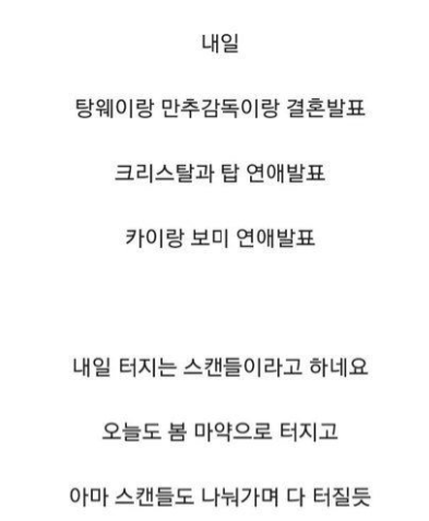 카이스탈은 최소 작년 여름부터 사귄거고 둘다 헤어진시기 비슷할듯 그러다 둘이 눈맞아서 사귀는거