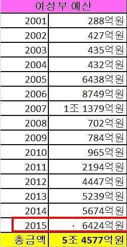 성인지 예산은 올해만 해도 22조 이고 여성가족부가 받는 예산은 매년 수천억~1조 몇천억입니다.
