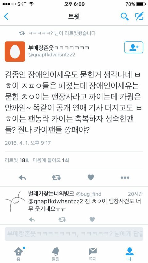 누군 팬들 생각해서 바쁘고 누군 연애질 하느냐 방송 하기 싫은티 팍팍 내시고? 맨날 마스크 꽁꽁 싸매더니 ??? 그흔한 마스크는 어디갔냐 팬들 완전 호구지 ㅋㅋㅋㅋ 호텔?! 하 그세계에서 사네 더러워