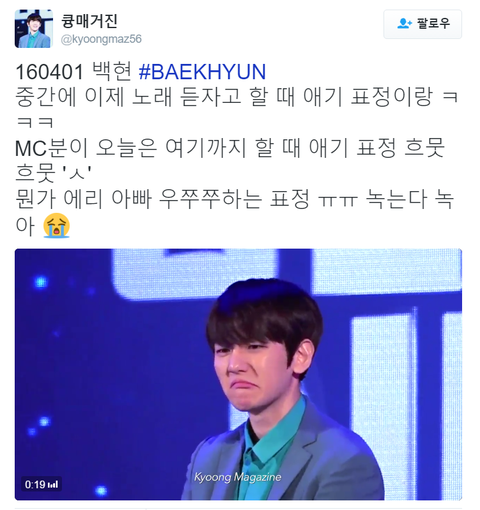 이제 노래 듣자고 할 때 백현 표정이랑.......