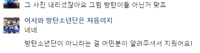이거 아까 사진 내리셨길래 물어봤는데 방탄이들 아니래 그럼 다들 할일 하시길