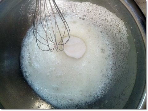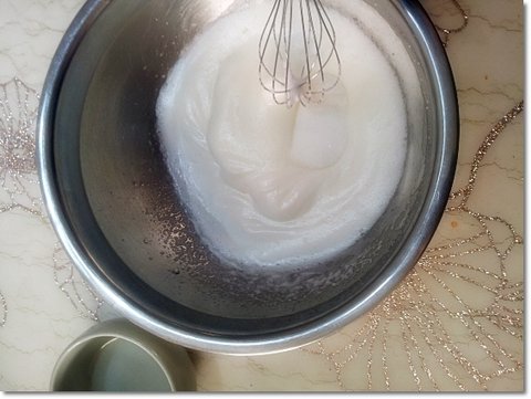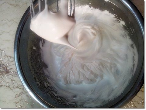 요래 거품 내는 중간중간에 설탕을 넣어가며 거품 내주면 흰자가 생크림마냥 부풉니다.