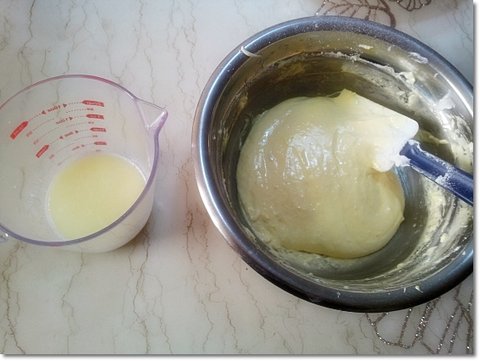 아까 우유와 버터를 전자레인지에 돌려 버터를 녹인 상태로 준비해둡니다.