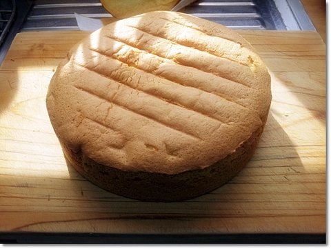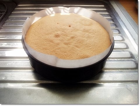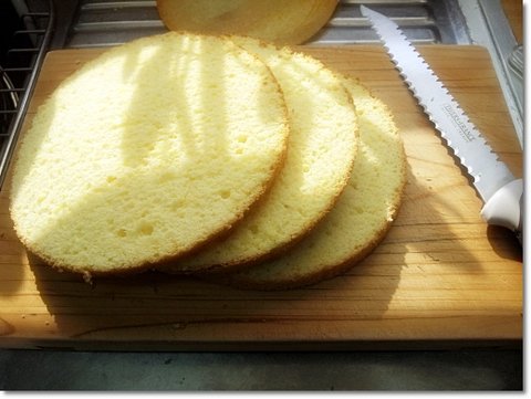 다 식었으면 종이를 제거하고 케익을 만들어야하기 때문에빵을 3등분으로 나눠줍니다. (저 케익 빵을 제누와즈라고 부릅니다. 좀 간편하게 말하면 케익 시트지)