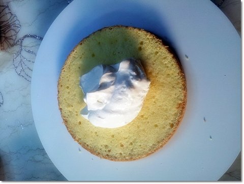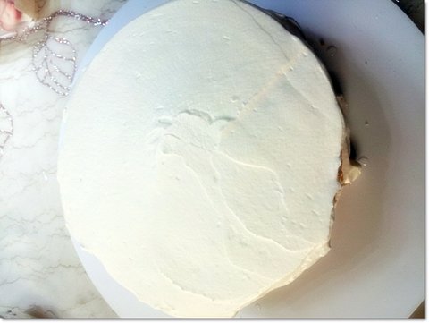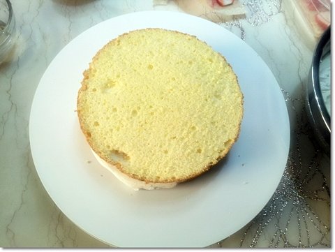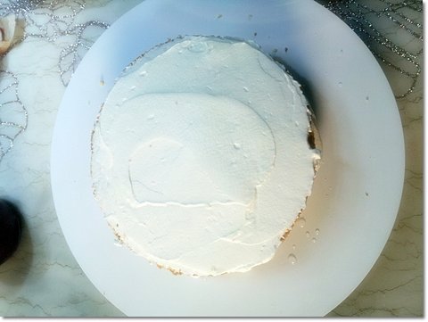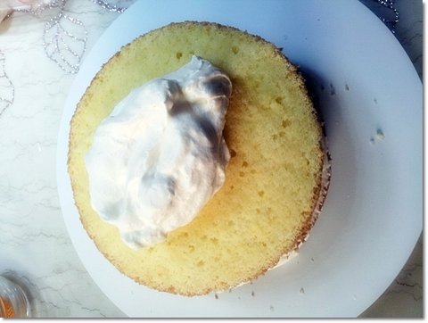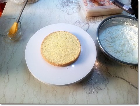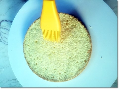 윗면에 동일하게 시럽을 골고루 발라준 뒤에 생크림을 얹고