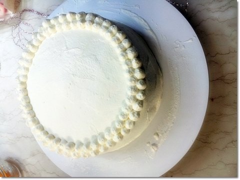 그 다음은 옆면에다가 생크림을 바릅니다.