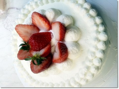 옆면 아이싱 작업이 이쁘게 됐다면 요런 편법을 안써도 되지만;;;옆면이 전 좀 울퉁불퉁해서 그걸 가리는 편법으로저렇게 딸기를 슬라이스 해서 붙였습니다. ㅎㅎㅎ;;;이걸로 완성입니다.