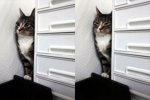 이 사진은... 울 냥이가 겁이 많음을 너무나 잘 보여주는.