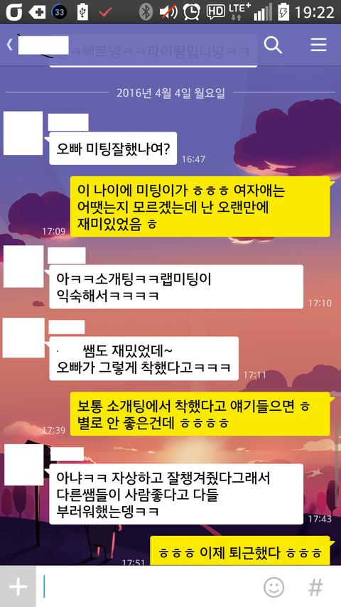 후배랑 소개팅녀가 어제 소개팅 어땠는지 얘기하고 저한테 물어본거 같은데