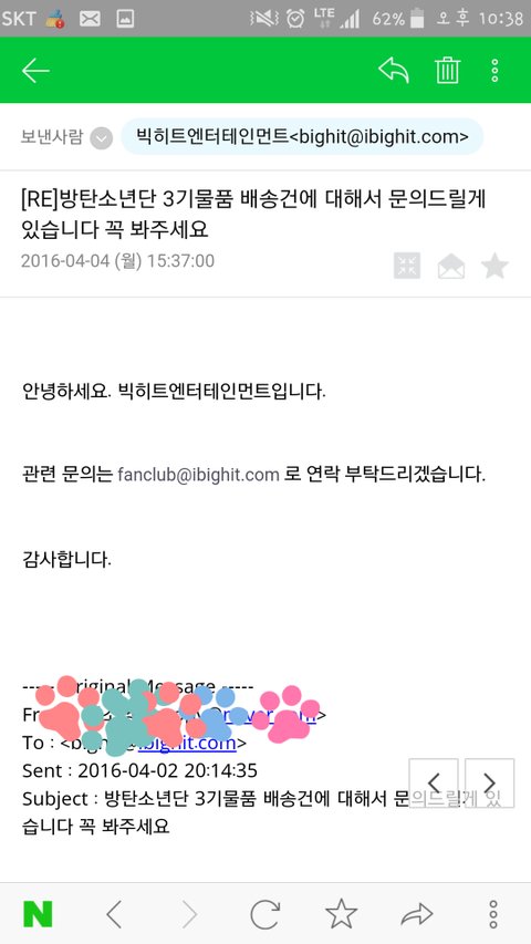빅히트도 메일 답장이오는구나..