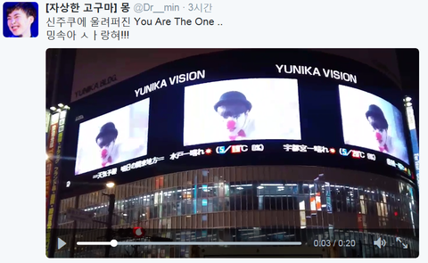 트윗보니까 신주쿠 오스트는 완판이라는 소식! ㅊㅋㅊㅋ 근데 저 대형광고는 화면만 나오는게 아니라 소리도 나오는가봐? 헐 신주쿠에 울려퍼진 유아더 원이라니 진짜 가보고 싶다 ㅠㅠㅠㅠ