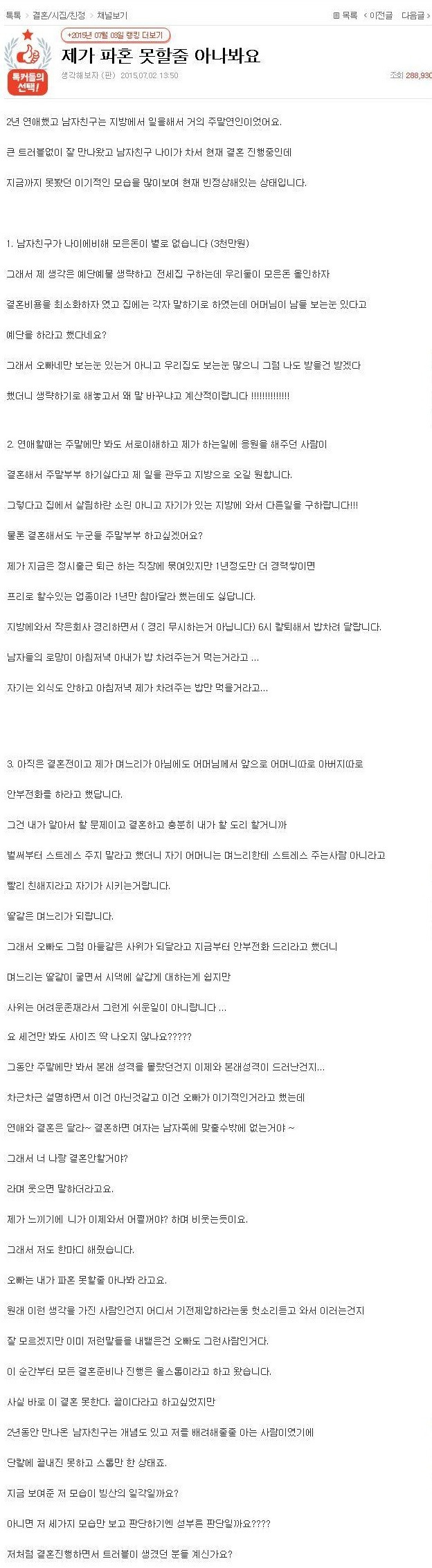 둘만 잘 살자는 남친이랑 파혼함