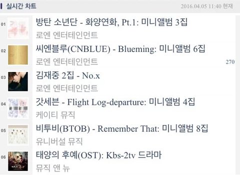 화양연화 화이트ver 재판매로 음악뱅크 13위 재진입