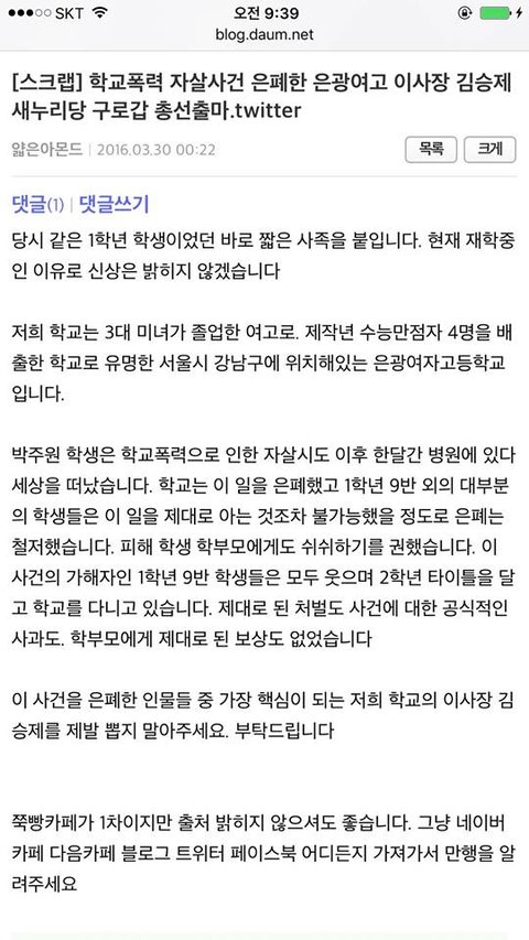 은광여고왕따 자살사건 잊혀져서는 안됩니다.