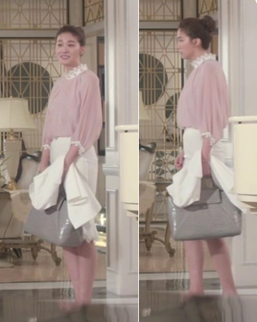 블라우스에 랑방컬렉션 액세서리 트라페즈 토트백 들구