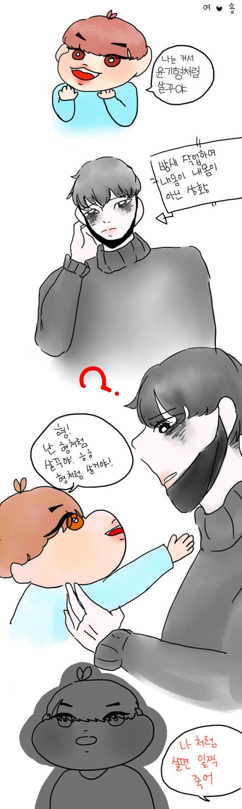 앜ㅋㅋㅋㅋㅋ지민이 진짜 귀여웠유....근데 진짜 융기처럼 작업하고 하다보면 힘들겠지 많이...(서글서글)출처는 짹짹이