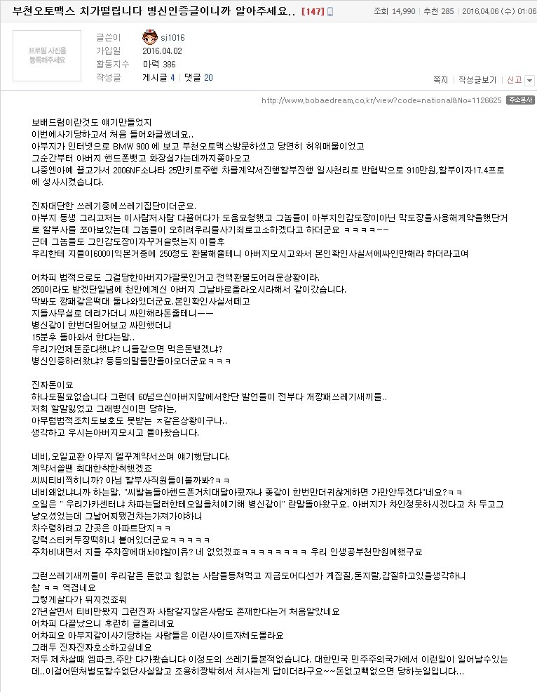 중고차 사려다가 봉변