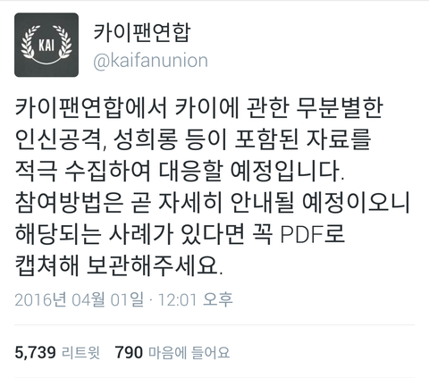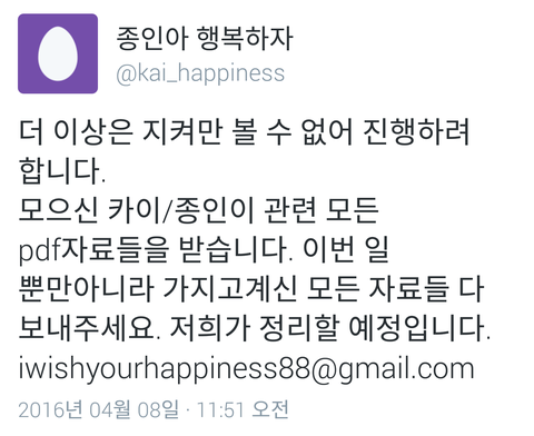이미 예전에 도를 넘어선 악플들 더 이상 보고 있다간 애 잡겠어 이번 일뿐만 아니라 여태까지 모은 모든 악플자료 받으신다고 하니 꼭 메일로 보내줘 사진에 있는 메일주소로 보내면 되고 궁금한 점은 사진의 계정주에게 디엠으로 질문하길 바래 종인이 지켜주자 우리가