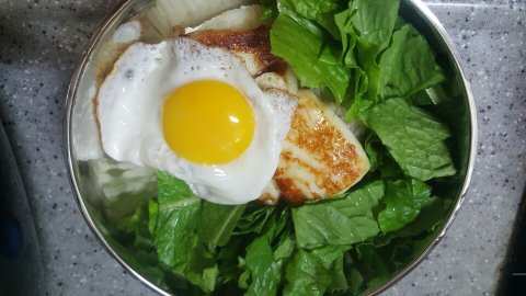 별다른 재료가 없을때 상추, 밥, 계란 그리고 구워먹는치즈가 곧 버려질거같아서