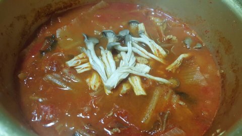 김치찌개 똑같이 끓이시고 버섯을 많이 넣으면 향도 좋고 맛도 있더라구요