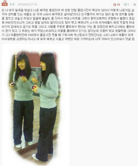 아이린데뷔하고도 십년전 첫번째두번째 사진인 중딩때랑 비슷하게찍힌사진들 많음 이게그중하나 게다가저화장이상하게 하고 렌즈왕방울만한거 낀 프로필사진보다도 아이린중졸사 이미지금이랑똑같아ㅇㅇ