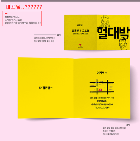 대표님: 안돼. 결혼은 재밌는거. 그럼 청첩장도 재밌는거.