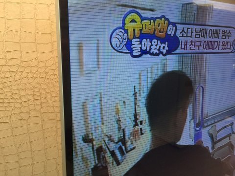 내가 보낸 사진을 미리 봤을텐데도 모르는척 들어오시더니 TV를 한번 쓱 보시더니