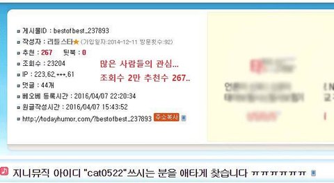 사건의 발달 : 무명의 가수가 자기곡을 들어준 사람을 찾음 ㅋㅋ