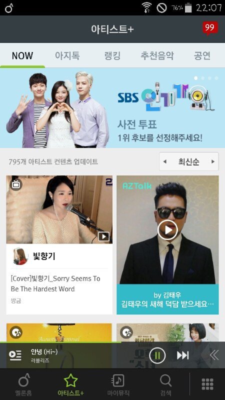 2.배너에 인기가요 엠씨들사진과 사전 투표가 뜬다.