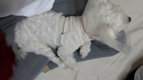 안녕하세요 중형사냥개한테 물려 수술한 말티즈 견주입니다