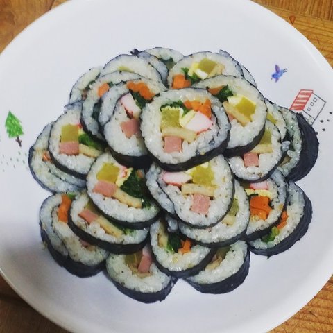정말 아주 기본에 가까운 김밥, 가족들이 다들 좋아해서 주말에 한번 싸보았습니다.
