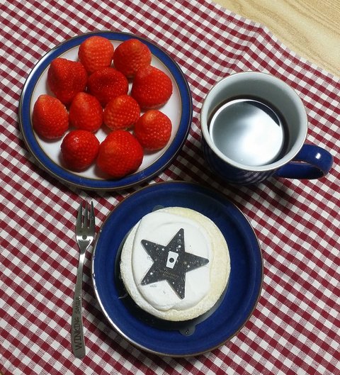 냉동실에 넣어두었던 케잌 처치하고자 요렇게 한번 먹어보았어요.