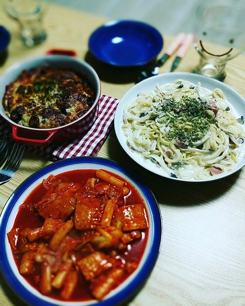 21. 소고기그라탕 & 까르보나라 & 떡볶이