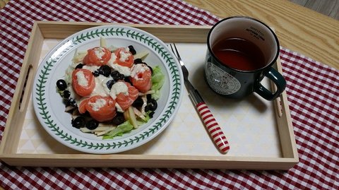 양상추랑 사과, 올리브 넣고 연어랑 샐러드 만들어먹었습니다. 매실차가 빠지면 섭하니까ㅋ