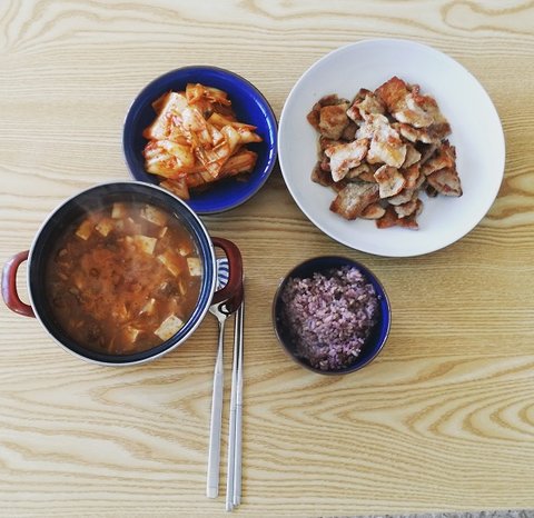 5. 집밥(삼겹살과 구운 김치&된장찌개)