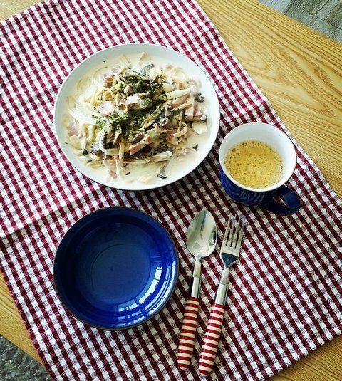가끔 파스타 먹고 싶을 때 이렇게 크림소스로 만들어먹곤 합니다.