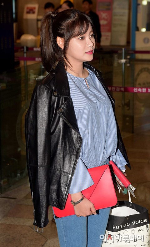 베이직한 셔츠도 베이지 계열의 단정한 미니 스커트도 초아니까 가능한 공항패션인듯