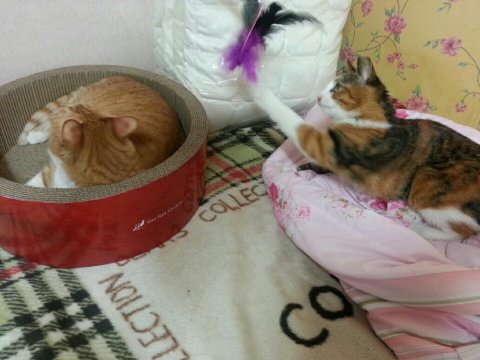 그 좋아하는 태비로 꼬셔서 포획에 성공을 했죠.
