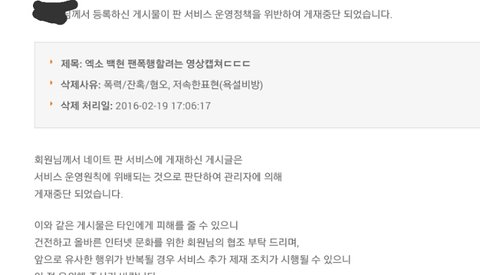 이것도댓글에 올려준캡쳐인데 심지어 엑소멤버인 카이까는글은 삭제못해준다고했대 운영자가 백현악개빼박이네