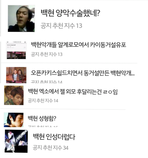 지금도 논점흐릴려는애들아 아니 백현만까여? 지금누가까인게 논점이아니라 샤이니포함해서 다른연예인성형글은 삭제안해주면서 왜 백현성형글만 삭제하냐고!!