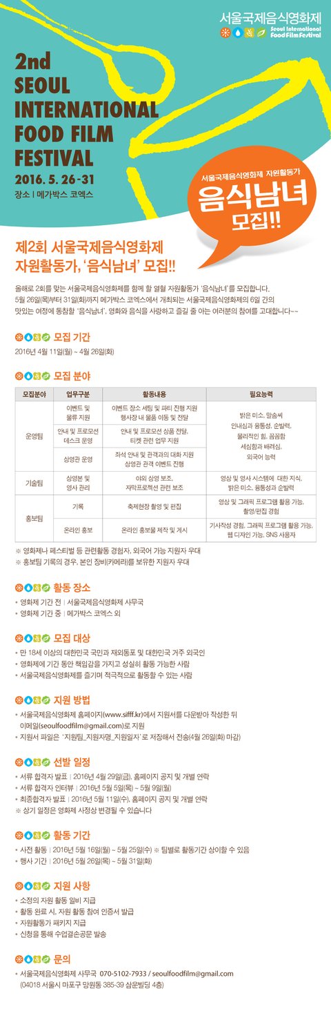 제2회 서울국제음식영화제 자원활동가 '음식남녀' 모집!!