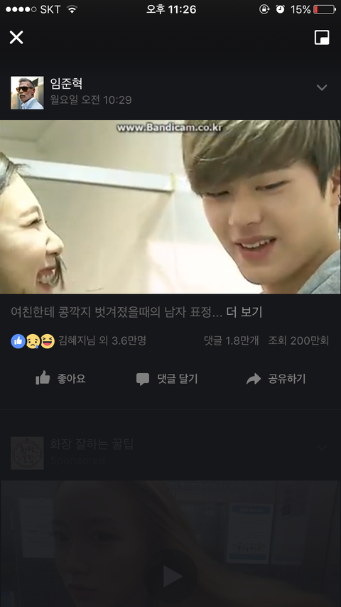 누가봐도 설레는 장면을 앞뒤자르고 정떨어진 표정으로 만듬....노답페북