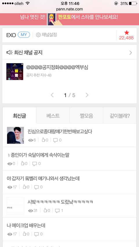 팬톡 검색 보기