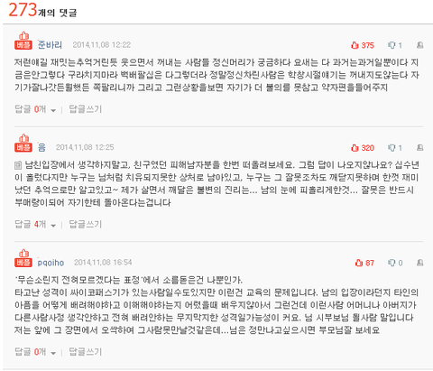한밤중에 그 패거리중 한명에게 전화가 와서는 제수씨가 피해의식이 있는건 알겠는데