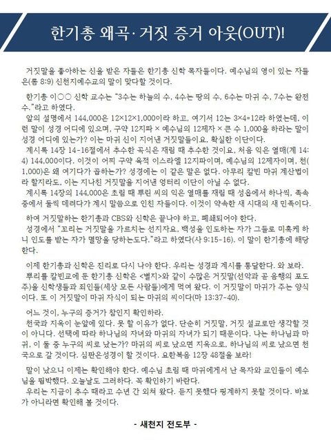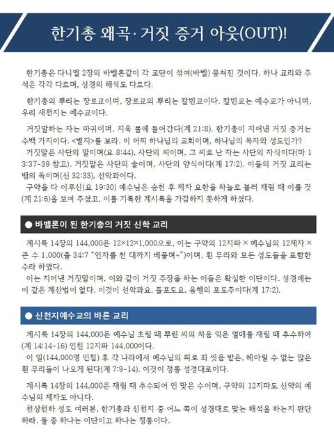 한기총 왜곡 거짓 증거 아웃(OUT)!