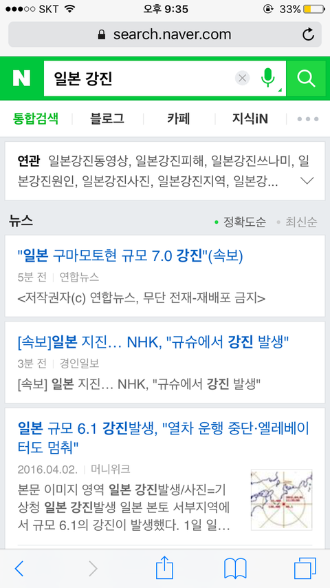 와 일본지진이 부산까지 느껴지네