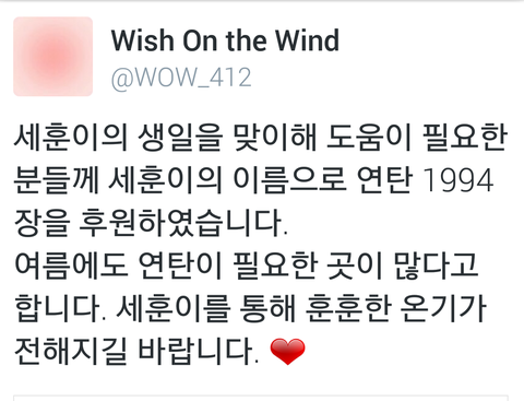 위시온더윈드에서 생일 기념으로 연탄기부했대