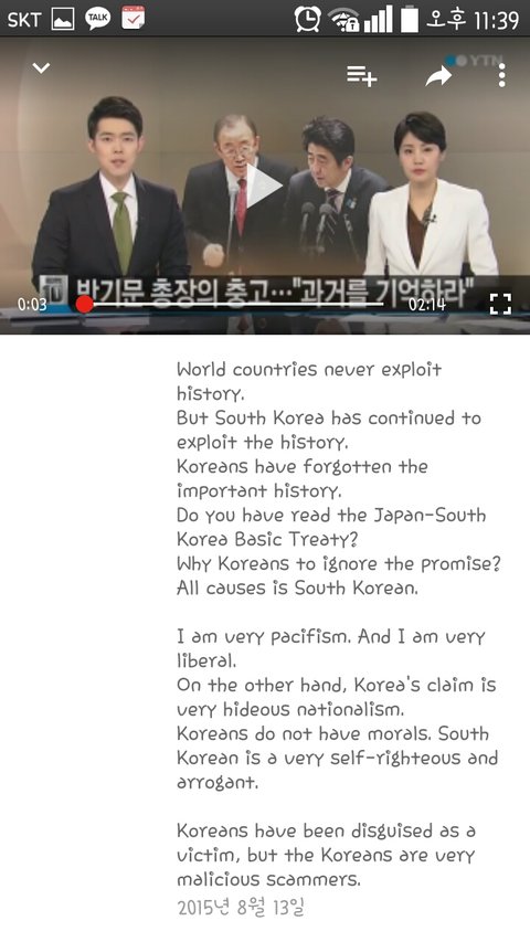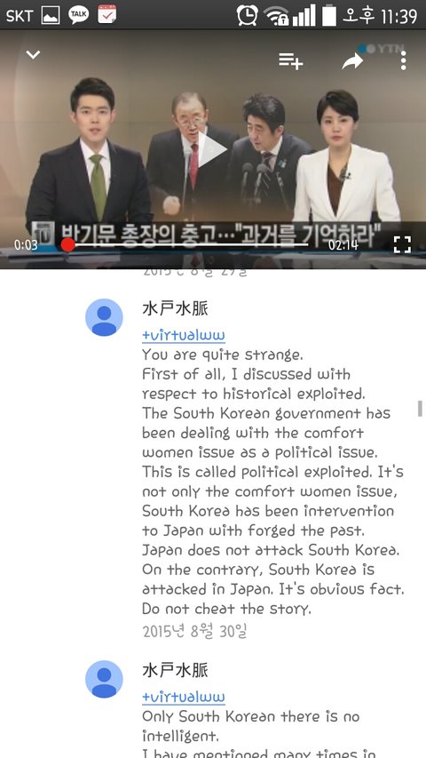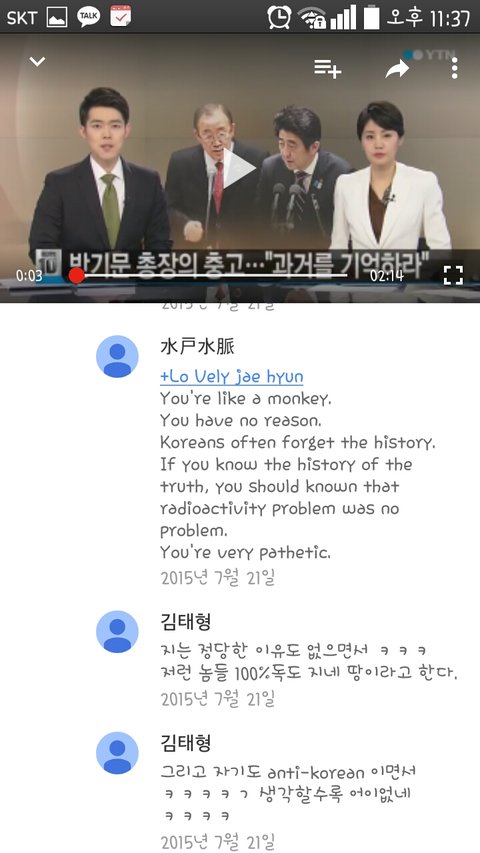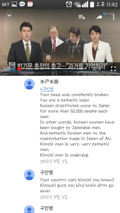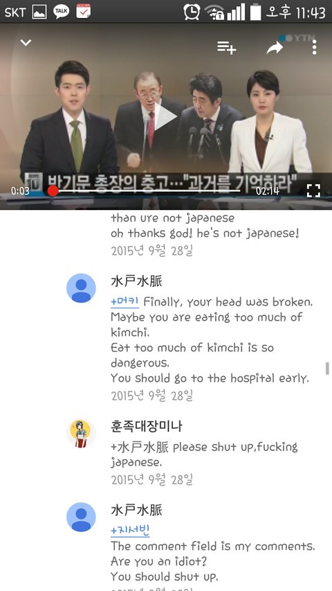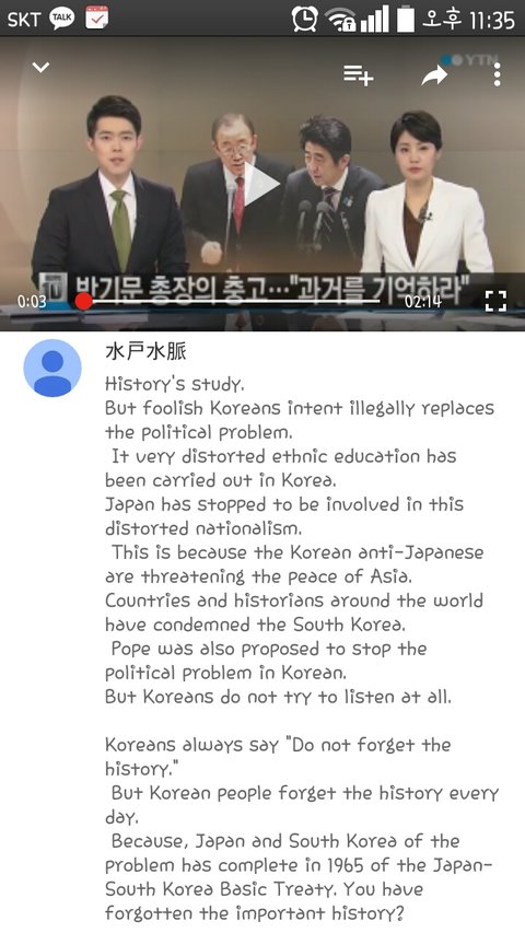 위 사람은 지속적으로 한국을 비하하고있으며 어제의 나는 그사람이 한국인 위안부는 부모에 의해 팔린 것이